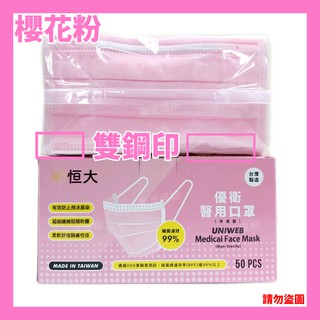 商品名稱:恒大優衛醫用口罩 規格:50入/盒 貨源:公司貨 產地:台灣 保存期限:5年 ※口罩商品屬於個人衛生用品性質具備消保法第十九條所定之合理例外情事,經拆封後無7日 . 恒大優衛口罩『櫻花粉 』口罩預購中❤️❤️ 終於有非藍色綠色的口罩惹, 看了心情好舒暢 #mit口罩大廠#一盒299元好佛心歡迎到店預購#恒大顏色越 .